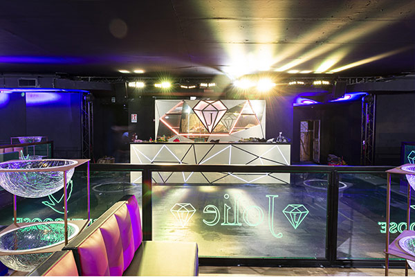 All’interno, la discoteca Jolie vanta un arredamento elegante e un’atmosfera perfetta per far festa. La sala principale, che unisce elementi di design moderno e tocchi classici, è resa unica da un’illuminazione che gioca un ruolo chiave: luci soffuse e faretti sulla pista creano un contrasto affascinante tra intimità e vitalità. L’acustica è stata progettata per offrire un’esperienza sonora coinvolgente e avvolgente, con musica chiara e potente che riempie l’ambiente senza risultare eccessiva.